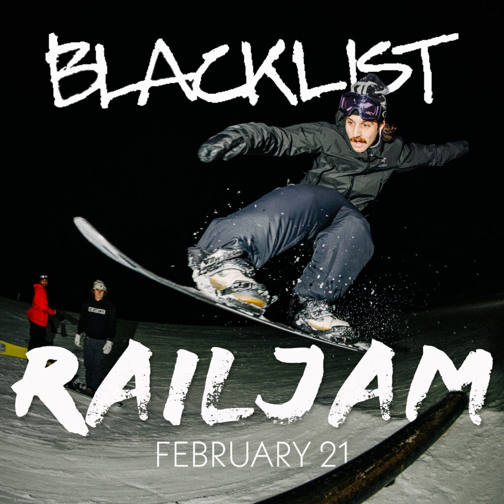 The Blacklist Rail Jam is a local favorite event in the Jam Session Terrain Park for snowboarders and skiers. Blacklist Boardshop will be providing giveaways for competitors. The event consists of two 30-minute rail jams for the Amateur and Pro divisions. A $5 registration cost allows access to all portions of the event. Awards for both AM and PRO divisions are to begin at 8:00 PM.